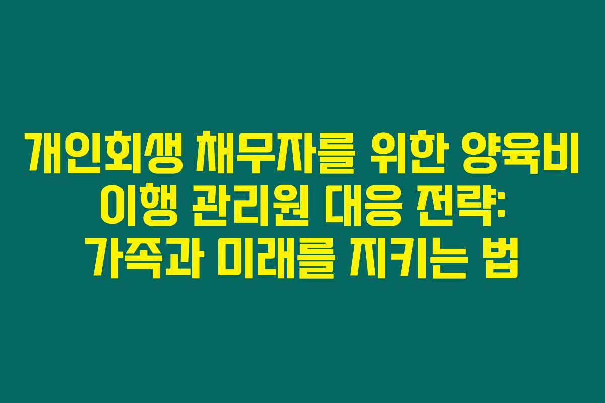 양육비 문제는 많은 가정에 중대한 영향을 미치는 상황이죠. 특히 개인회생 절차에 있는 채무자라면 더욱 신중한 대응이 필요합니다. 아래를 읽어보시면, 양육비 이행 관리원과 개인회생 채무자 간의 효과적인 대응 전략을 알아보실 수 있습니다. 이 글에서는 양육비 이행 관리원의 역할과 개인회생 절차 중 채무자가 어떻게 대처할 수 있는지를 상세히 설명합니다.