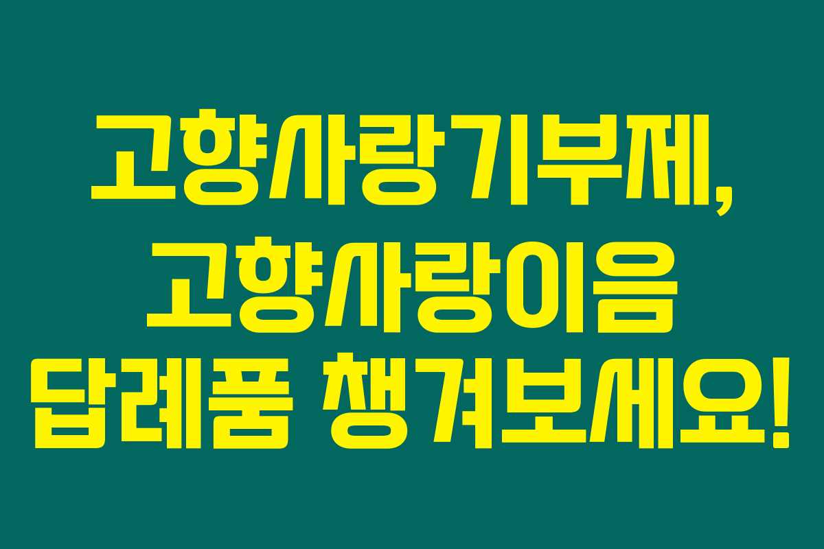 고향사랑기부제로 지역에 기여하고, 나도 좋은 답례품을 받아보세요! 꼭 한 번 참여해 보시길 바라요.