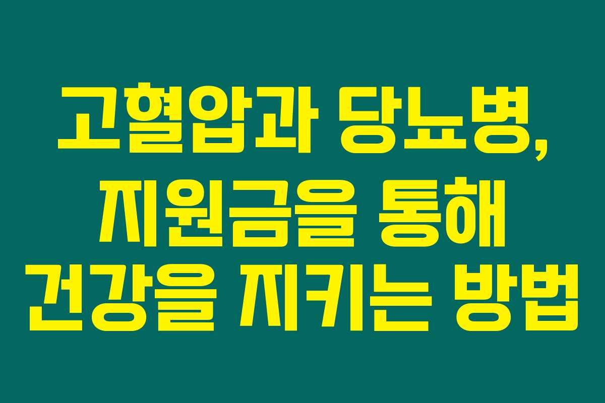 제가 직접 알아본 바로는 고혈압과 당뇨병은 우리 사회에서 매우 흔한 만성 질환이지만, 적절한 관리와 지원이 없다면 심각한 건강 문제로 이어질 수 있습니다. 그래서 고혈압과 당뇨병 환자들을 위한 지원금 및 교육 프로그램이 마련되어 있다는 사실에 대해 아래를 읽어보시면 많은 도움이 될 것입니다.