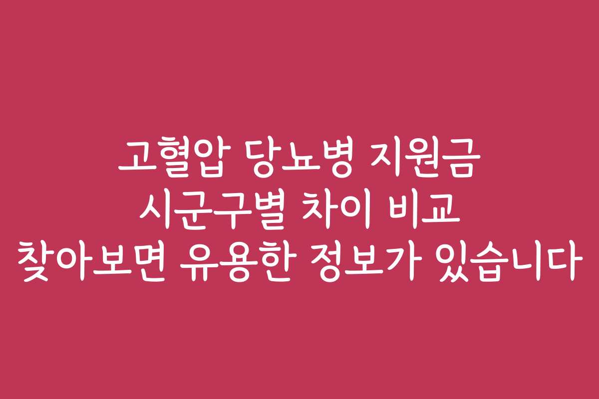 고혈압, 당뇨병, 지원금, 시군구별 차이, 의료비 지원, 약제비 지원, 건강관리 프로그램, 신청 방법, 자주 묻는 질문, 생활 질 향상, 정보 공유, 만성질환 지원 정책