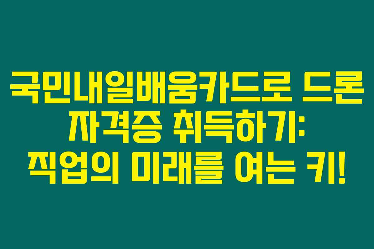 드론 자격증 취득이 단순한 이력서의 한 줄을 넘어, 나의 미래를 만드는 무기가 될 수 있다는 점을 강조하고 싶어요. 제대로 준비하기 위해 국민내일배움카드와 같은 지원 제도를 활용해 나만의 드론 사업을 꿈꿔보세요.