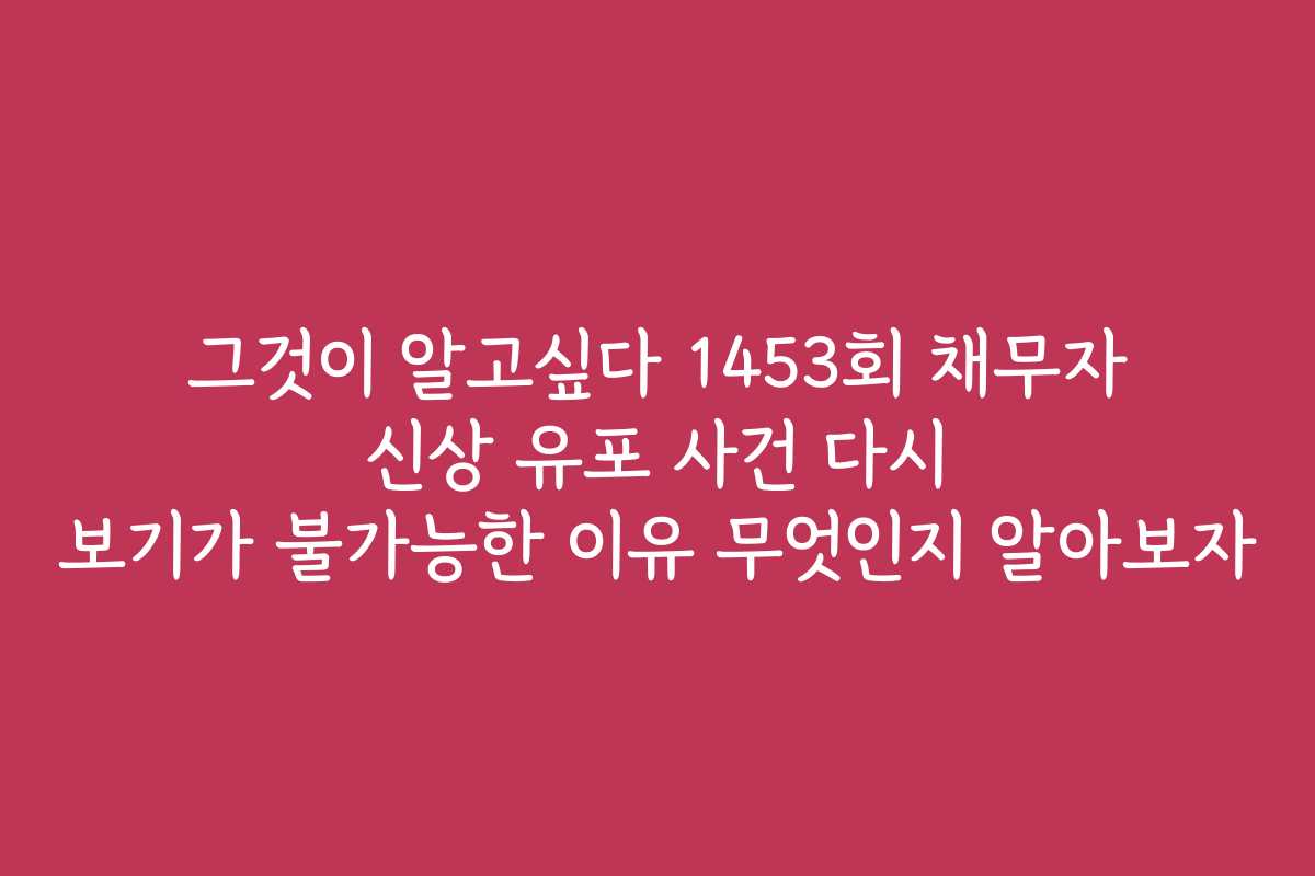 그것이 알고싶다를 통해 채무자 신상이 유포된 사건에 대해 많은 분들이 궁금해했습니다. 하지만 해당 회차를 다시 보기가 불가능하다는 사실을 알고 계신가요? 채무자 신상 유포 사건이 왜 이렇게 중요한지, 그리고 다시 보기가 불가능한 이유에 대해 자세히 알아보겠습니다.