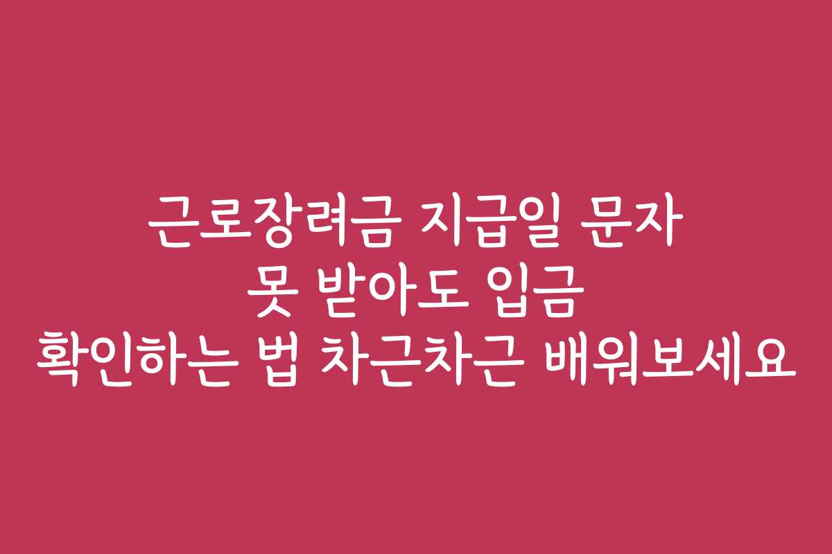 근로장려금을 기대하며 기다리고 계신가요? 지급일에 관련된 문자 알림을 못 받는 경우가 많아 혼란스러운 분들이 많습니다. 이 글에서 ‘근로장려금 지급일 문자 못 받아도 입금 확인하는 법’에 대해 차근차근 설명드리겠습니다.