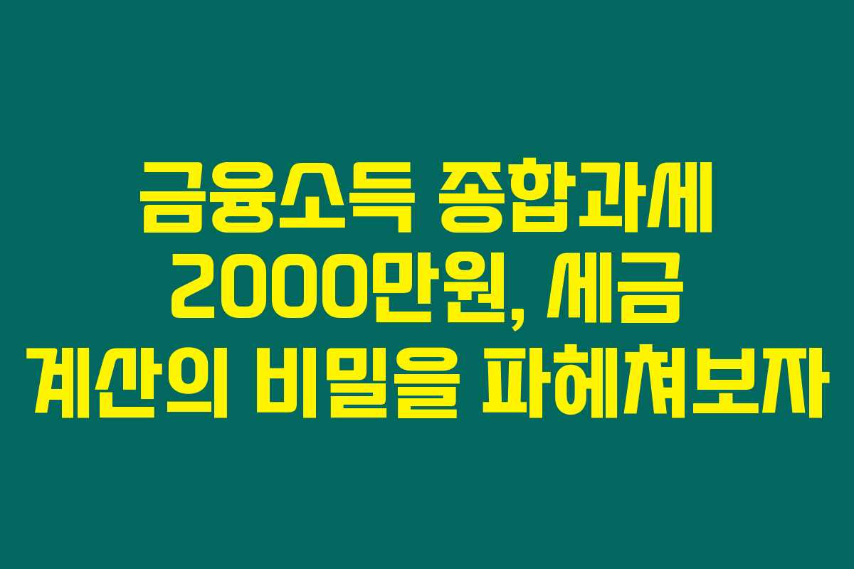 금융소득 종합과세는 국내 거주자의 금융소득을 종합하여 과세하기 위한 제도예요. 만약 이자 및 배당 소득이 2000만원을 초과하는 경우, 종합과세의 대상이 되죠.