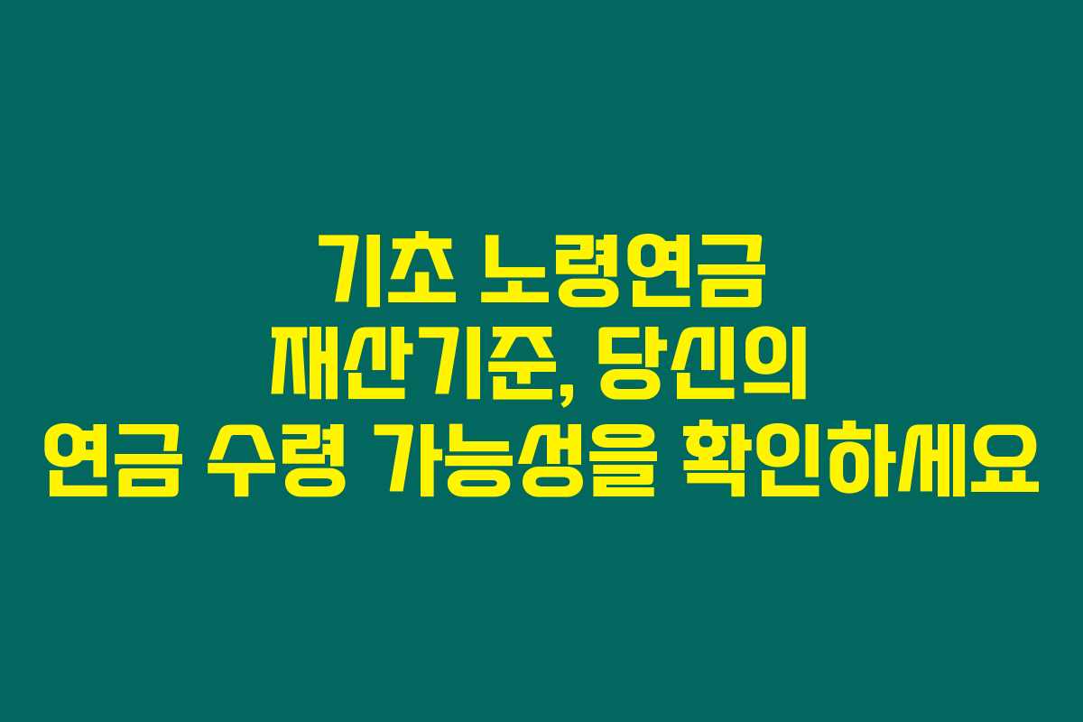 기초 노령연금을 받기 위해서는 재산기준도 중요해요. 많은 사람들이 기초 노령연금을 신청하려고 할 때 재산 문제로 고민하곤 해요. 실제로 개인의 재산이 어떻게 연금 수령에 영향을 미치는지 설명해드릴게요.