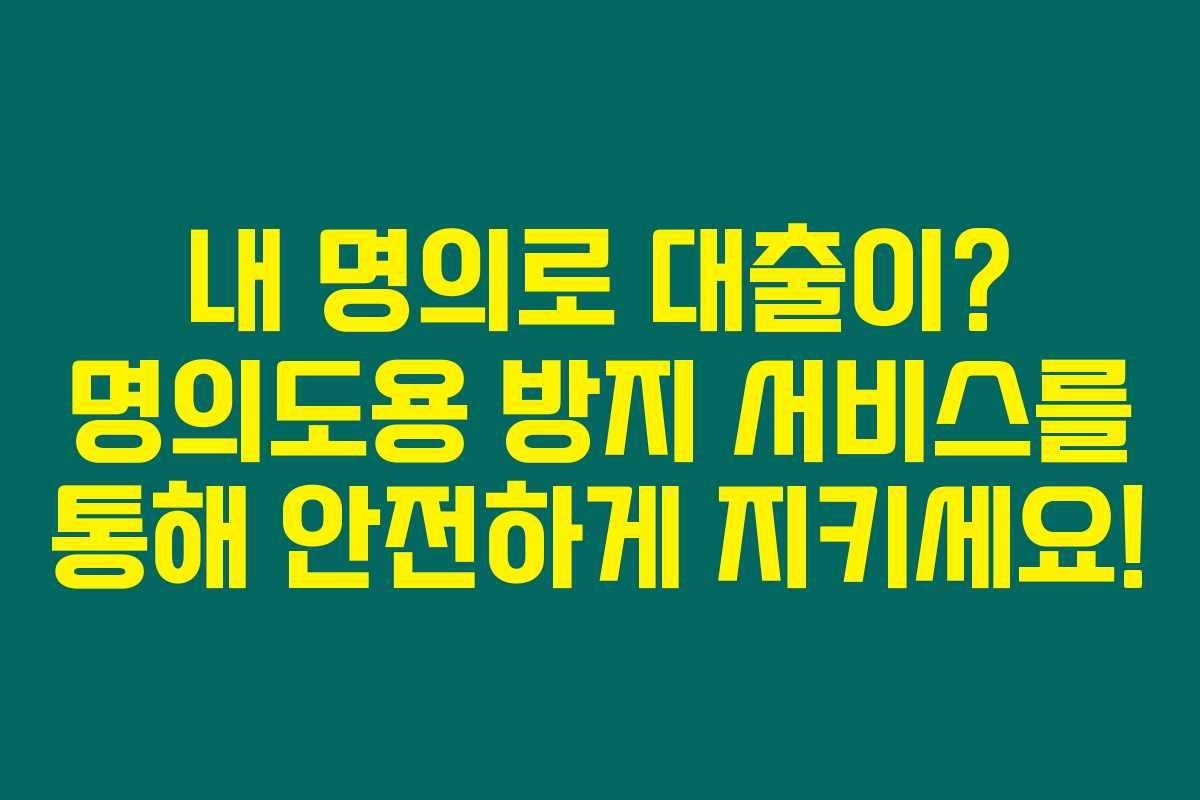요즘 사이버 범죄가 점점 대담해지고 있는 것 같아요. 특히 내 명의로 대출이 발생할 수 있다는 사실은 정말 두렵죠. 이러한 걱정을 덜어주기 위해 명의도용 방지 서비스를 신청해보는 건 어떨까요? 무료로 제공되는 이 서비스는 여러분의 소중한 정보를 지켜줄 수 있습니다. 아래를 읽어보시면 이 서비스에 대한 모든 정보를 알 수 있어요!