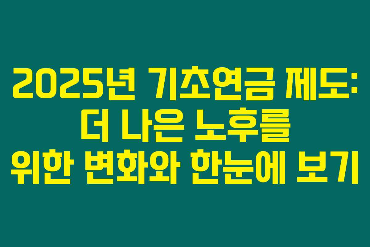 2025년 기초연금 제도에 관한 정보입니다. 제가 직접 살펴본 결과로는, 이 제도는 65세 이상의 노인 분들을 위한 중요한 지원 제도로, 여러 가지 변화를 통해 생활 안정과 복지를 키우려 하고 있습니다. 이 글을 통해 2025년에 일어나는 기초연금의 주요 변경사항과 개편의 필요성을 확인해 보세요.