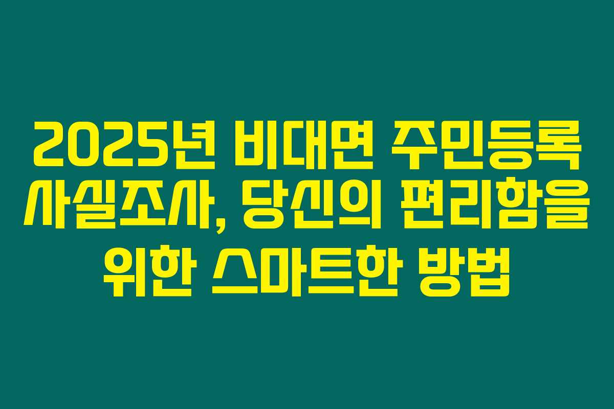 2025년 7월 21일부터 시작된 이번 주민등록 사실조사는 불편함을 최소화하고 보다 간편하게 참여할 수 있는 기회를 제공합니다. 지금 참여하지 않으면 나중에 조사를 위해 방문해야 할 수 있으니 주의하세요!