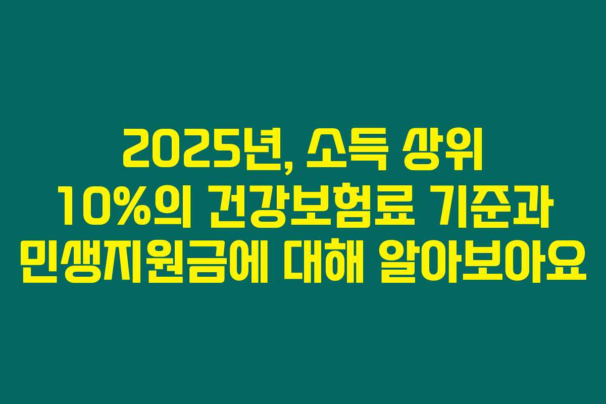 소득 상위 10%가 판별되는 기준은 개인이 아닌 가구 전체의 건강보험료를 기준으로 하므로 혼자서 판단하기 어려워요. 제가 사용해본 여러 방법 중, 가구 구성원 전체의 평균 건강보험료를 계산하여 확인하는 것이 가장 정확했어요. 그러니 혼자 계산하기보다는 가족 구성원 모두의 상황을 고려하는 것이 좋답니다.