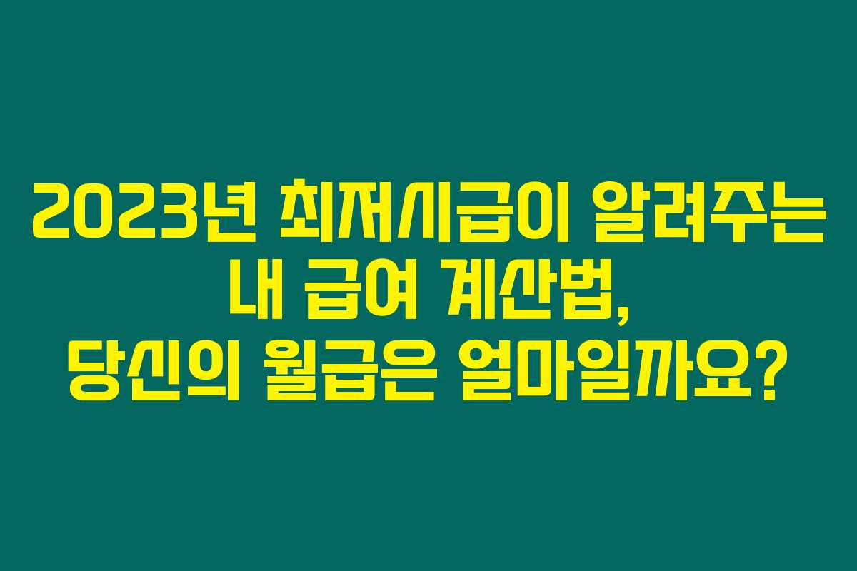 제가 직접 확인해본 결과, 2023년 최저시급을 통해 자신의 월급, 주급, 일급을 쉽게 계산할 수 있는 방법에 대해 소개할게요. 많은 분들이 자신의 급여가 얼마나 되는지 궁금해하는데요. 최저시급을 활용한 급여 계산기를 통해 간편하게 알아보실 수 있습니다. 아래를 읽어보시면, 2023년 최저시급의 변동사항과 계산 방법에 대한 유익한 정보가 담겨 있습니다.