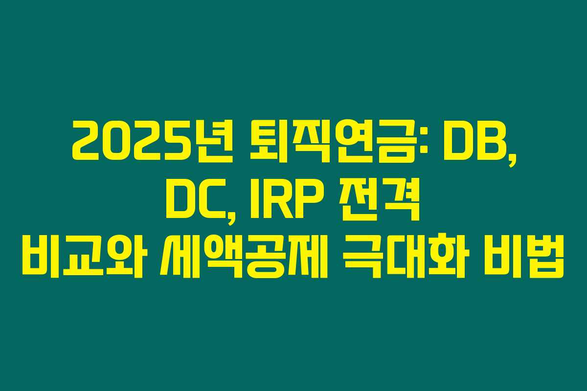 퇴직연금은 이제 당신의 노후를 책임질 필수 요소로 자리잡고 있습니다. 제가 직접 경험해본 결과로는, 퇴직연금 제도를 제대로 이해하고 활용하는 것이 무엇보다 중요하다는 것을 알게 되었어요. 특히 2025년부터는 퇴직연금 제도에 크게 변화가 올 예정이기 때문에, 미리 준비해야 할 사항들이 많답니다. 아래를 읽어보시면 2025년 퇴직연금의 주요 변경 사항, DB, DC, IRP 유형별 비교, 그리고 세액공제를 최대한 활용하는 팁을 자세히 안내드릴게요!