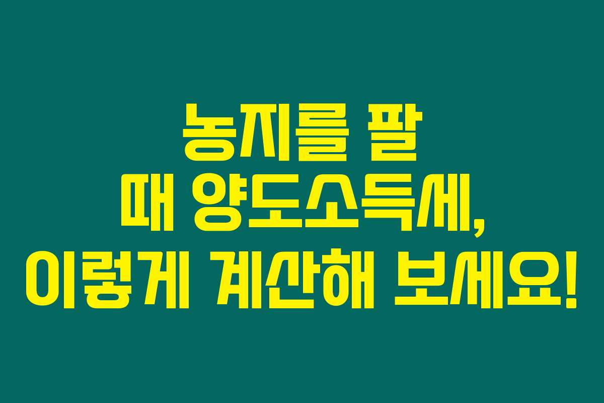 제가 직접 경험해본 결과로는, 농지를 매도하는 과정에서 양도소득세는 생각보다 복잡합니다. 그러나 양도소득세를 정확히 계산하면 세금을 줄일 수 있는 방법도 있습니다. 이 글에서는 농지 매도 시 발생하는 양도소득세 계산 방법에 대해 상세히 알려드릴게요.