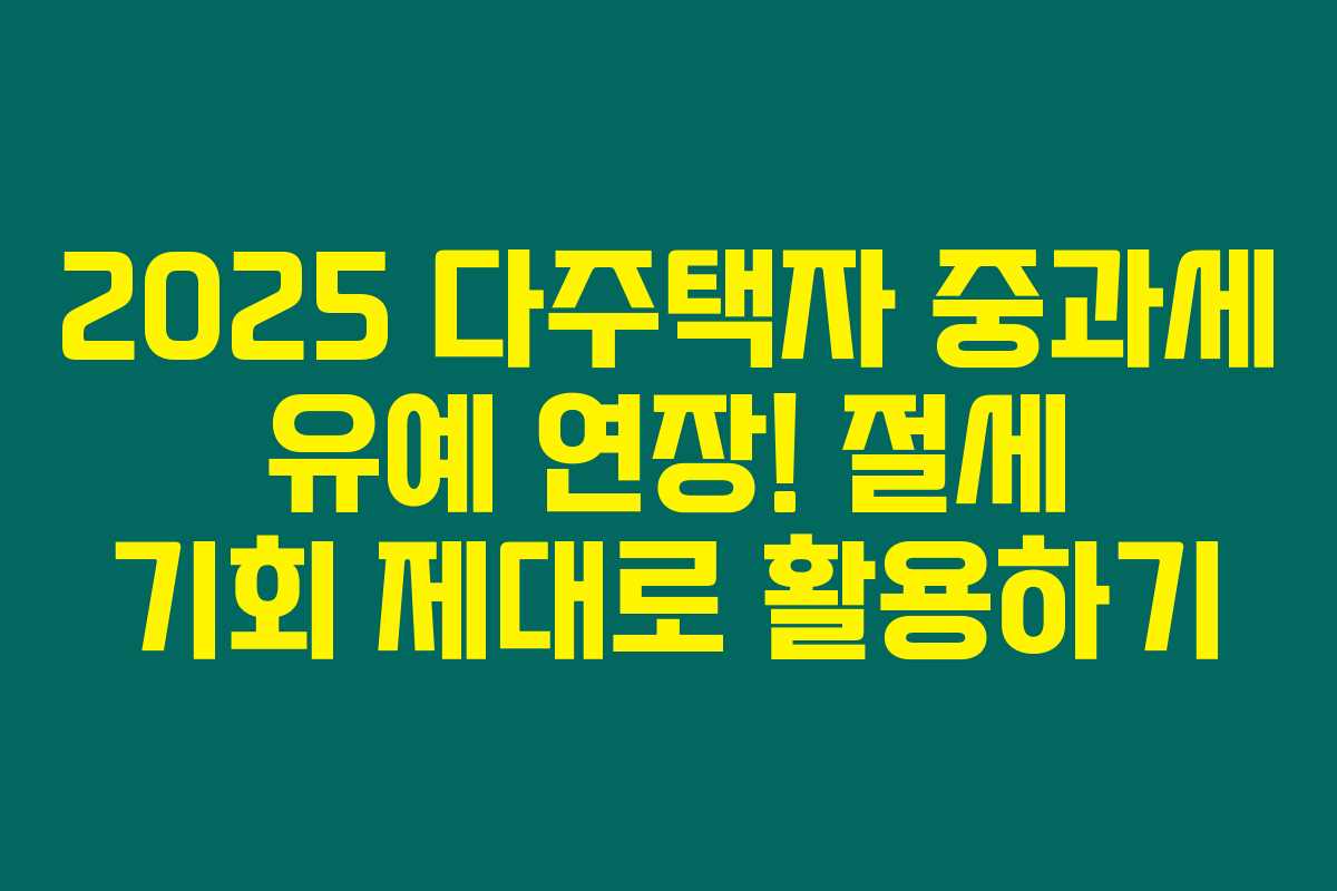 제가 직접 체크해본 바로는 정부가 2026년 5월까지 다주택자에게 양도소득세 중과세 유예 조치를 연장하면서 절세의 기회를 제공하고 있습니다. 다주택자들은 이 시기를 적절히 활용하여 세금 부담을 덜 수 있는 전략을 취할 수 있습니다. 아래를 읽어보시면, 적용 대상과 절차, 그리고 효과적인 절세 전략을 제시합니다.
