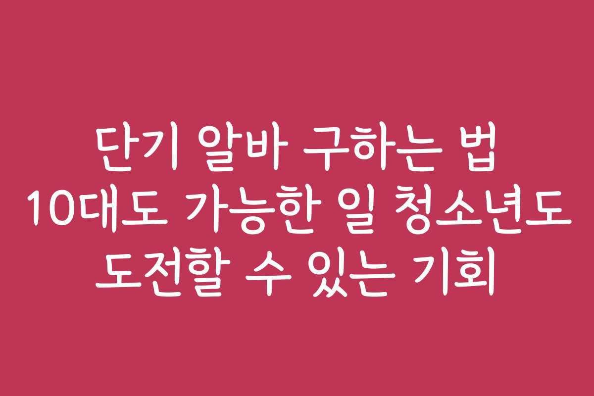 키워드: 단기 알바, 10대 알바, 청소년 알바, 알바 구하는 법, 단기 아르바이트, 알바 경험, 이력서 작성, 면접 준비, 구인구직 사이트, SNS 활용, 법적 근무 조건