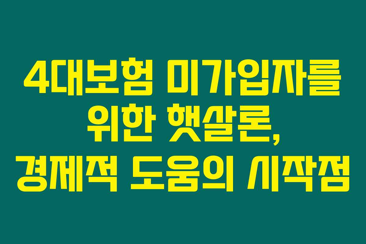 제가 직접 알아본 바로는, 한국에서 4대보험에 미가입한 국민들을 위한 금융 상품 중에서는 햇살론이 특히 주목받고 있습니다. 다양한 이유로 보험에 가입하지 못한 분들을 위해 준비된 이 대출 상품은 적은 금리와 유연한 상환 조건으로 많은 분들이 큰 도움을 받고 있지요. 아래를 읽어보시면 4대보험 미가입자에 대한 햇살론의 개념 및 특징, 신청 절차와 자격 요건, 금리 정보 등을 자세히 알아보실 수 있습니다.