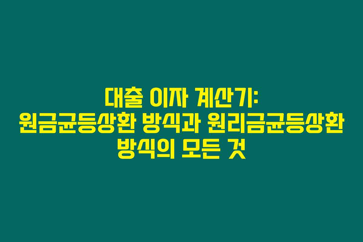제가 직접 체크해본 바로는, 대출 이자를 계산하는 것은 어려워 보이지만, 실상은 개념만 이해하면 아주 간단하답니다. 특히, 원금균등상환과 원리금균등상환 방식은 많은 사람들이 혼동하는 경우가 많지요. 아래를 읽어보시면, 이 두 상환 방식의 차이와 각각의 장단점을 명확히 이해할 수 있을 거예요.