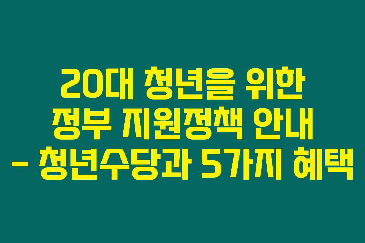 20대 청년을 위한 정부 지원정책 안내 – 청년수당과 5가지 혜택