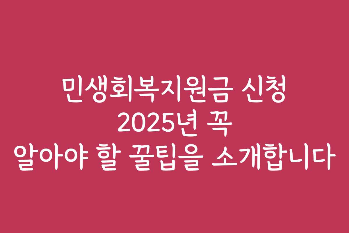 2025년 민생회복지원금 신청, 꼭 알아야 할 꿀팁을 소개합니다!