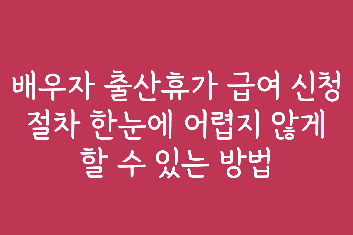 배우자의 출산은 가족에게 있어 매우 중요한 순간입니다. 하지만 출산휴가 급여를 신청하는 과정은 복잡할 수 있습니다. 본 포스팅에서는 고통 없이 쉽게 배우자 출산휴가 급여를 신청할 수 있는 방법을 소개하겠습니다.
