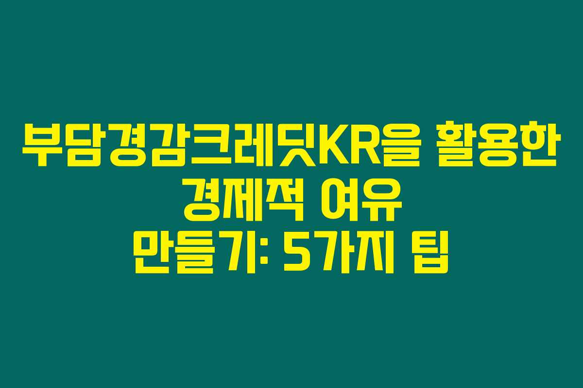 이런 팁을 통해 부담경감크레딧KR를 효과적으로 활용하신다면, 소상공인으로서 경제적 여유를 만들어가실 수 있습니다. 힘내세요!