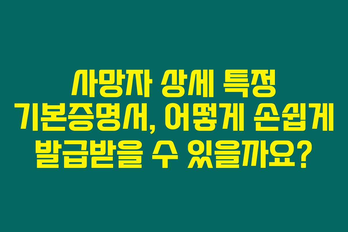 사망자의 기본증명서 발급 절차는 여러 상황에서 필요한 법적 서류이며, 특히 상세 특정 기본증명서는 최소한의 개인정보를 포함하여 필요성을 더욱 높입니다. 아래를 읽어보시면, 사망자의 상세 특정 기본증명서를 온라인에서 발급받는 구체적인 절차와 함께 주의사항들을 확인할 수 있습니다.