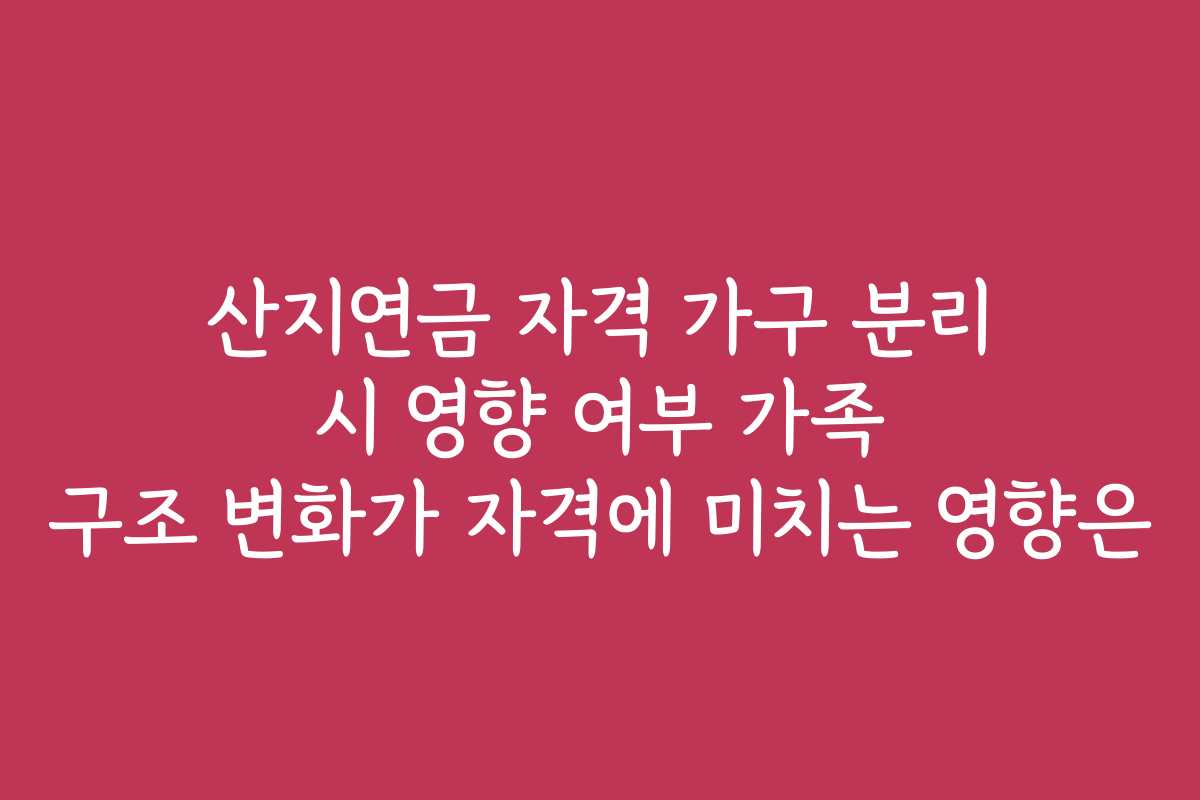 산지연금 자격 가구 분리 시 영향 여부 가족 구조 변화가 자격에 미치는 영향은