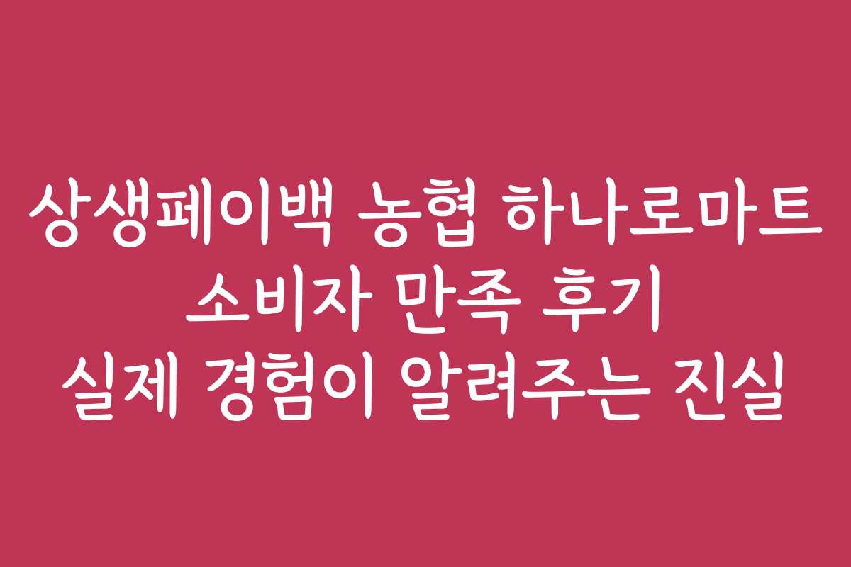 상생페이백 농협 하나로마트 소비자 만족 후기 실제 경험이 알려주는 진실