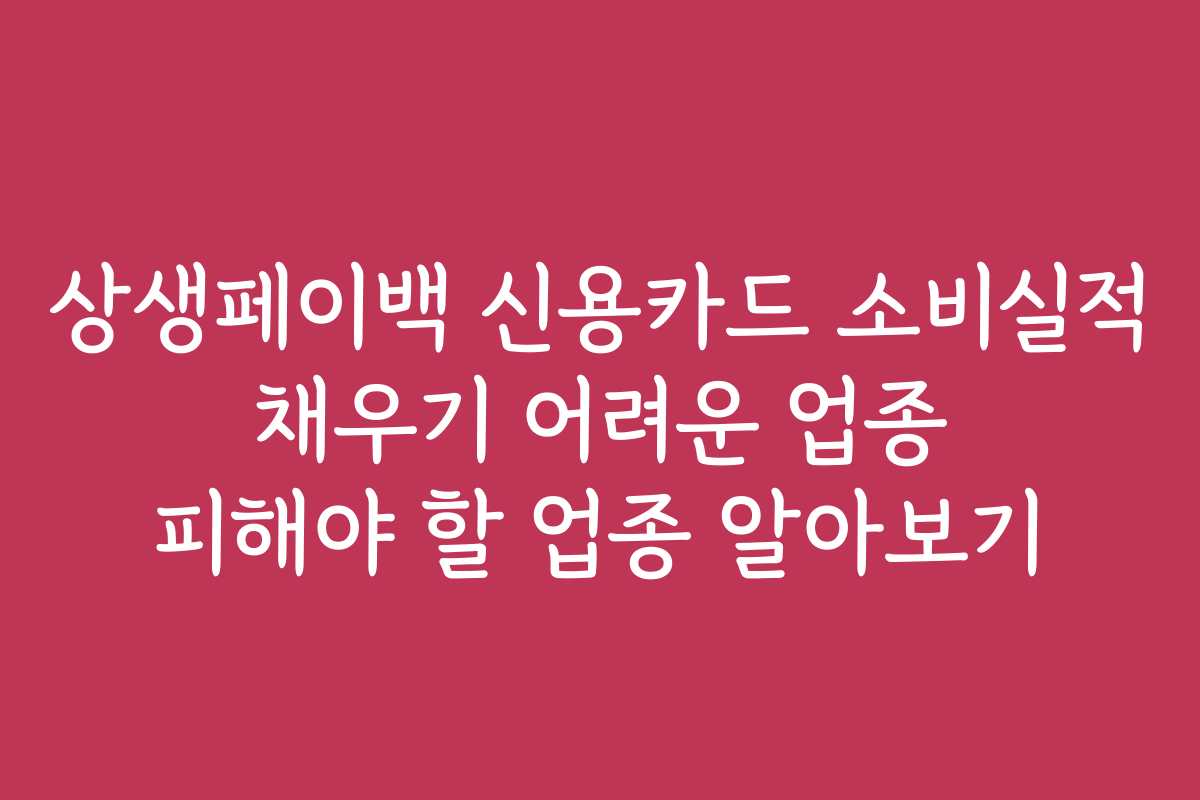 상생페이백 신용카드는 사용자가 소비를 통해 페이백을 받을 수 있도록 설계된 카드입니다. 이 카드를 충분히 활용하기 위해서는 특정 업종에서 소비 실적을 잘 쌓는 것이 중요합니다. 그러나 모든 업종이 실적을 쉽게 채울 수 있는 것은 아니므로, 어떤 업종을 피해야 할지를 아는 것이 필요합니다. 다음 섹션에서는 소비 실적을 채우기 어려운 업종에 대해서 알아보겠습니다.