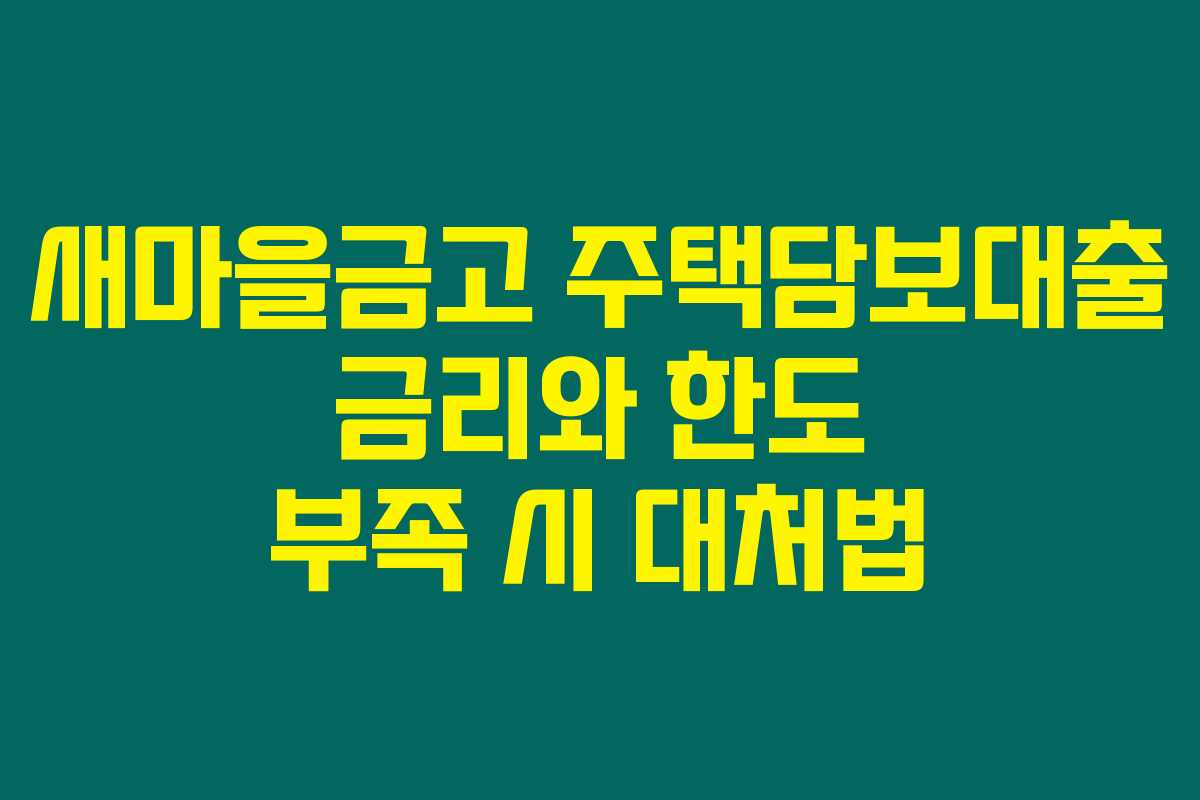 제가 직접 알아본 바로는 새마을금고에서 주택담보대출을 이용하는 것은 많은 분들에게 유용한 선택입니다. 하지만 금리와 한도에 관한 다양한 정보가 있어 여러분께서는 혼란스러우실 것 같아요. 이를 해결하기 위해 새마을금고의 주택담보대출 금리와 한도가 부족할 경우의 대처 방법들에 대해 상세히 정리해 보았습니다. 아래를 읽어보시면 좀 더 명확한 정보를 얻을 수 있을 거예요.