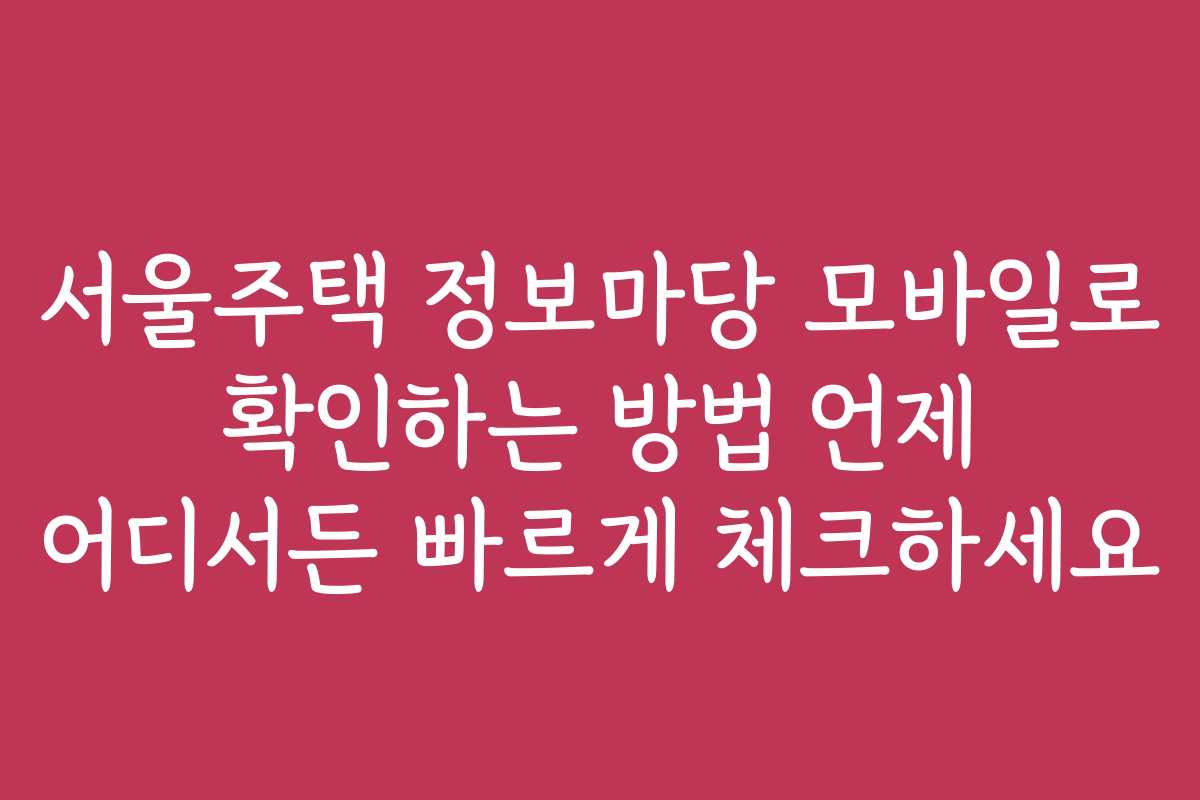 서울주택 정보마당 모바일로 확인하는 방법 언제 어디서든 빠르게 체크하세요