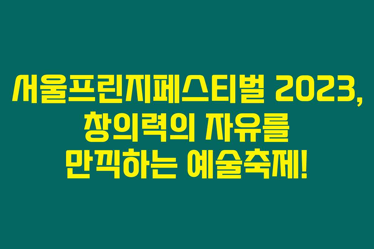 이번 서울프린지페스티벌 2023은 이렇게 다양한 예술가들의 특별한 작품을 소개하며, 관객들에게 새로운 경험을 선사하는 기회가 될 거예요. 창의적이고 실험적인 예술의 세계에서 만나요!