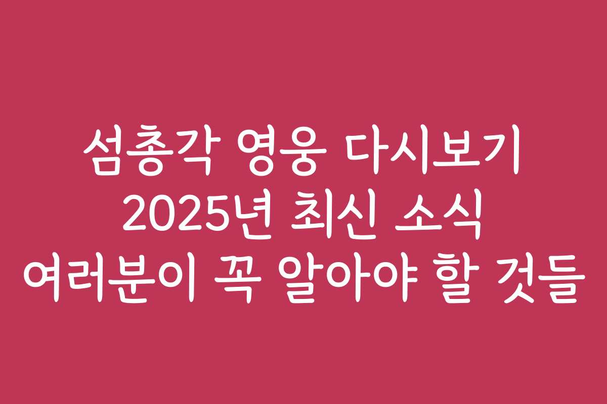 섬총각 영웅 다시보기: 2025년 최신 소식과 여러분이 꼭 알아야 할 것들