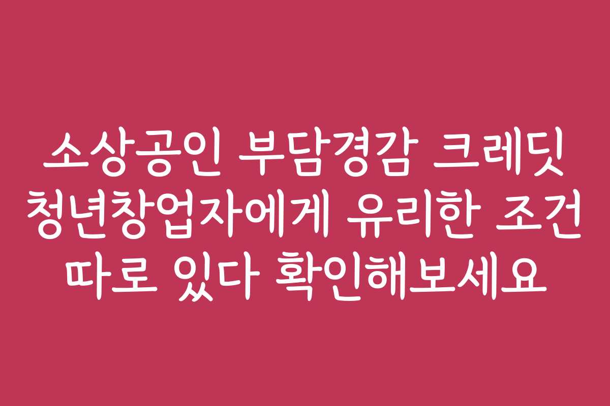 소상공인 부담경감 크레딧이 청년창업자에게 더 유리한 조건을 제공한다는 사실, 알고 계셨나요? 창업을 고민하는 청년들에게 이러한 지원 혜택이 정말 중요한 문제입니다. 이 글을 통해 소상공인 부담경감 크레딧의 조건을 상세히 살펴보고, 청년 창업자들이 이 혜택을 어떻게 활용할 수 있는지 알아보겠습니다.
