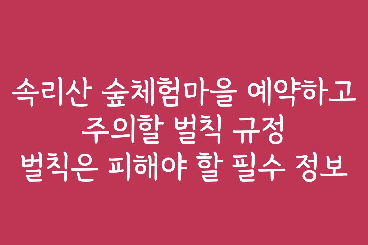 속리산 숲체험마을은 자연을 즐길 수 있는 최고 명소지만, 벌칙 규정을 잘 준수해야만 더욱 즐거운 경험이 될 수 있습니다. 사전 예약과 규정 검토를 통해 더욱 안전하고 유익한 여유를 만끽하시기 바랍니다.