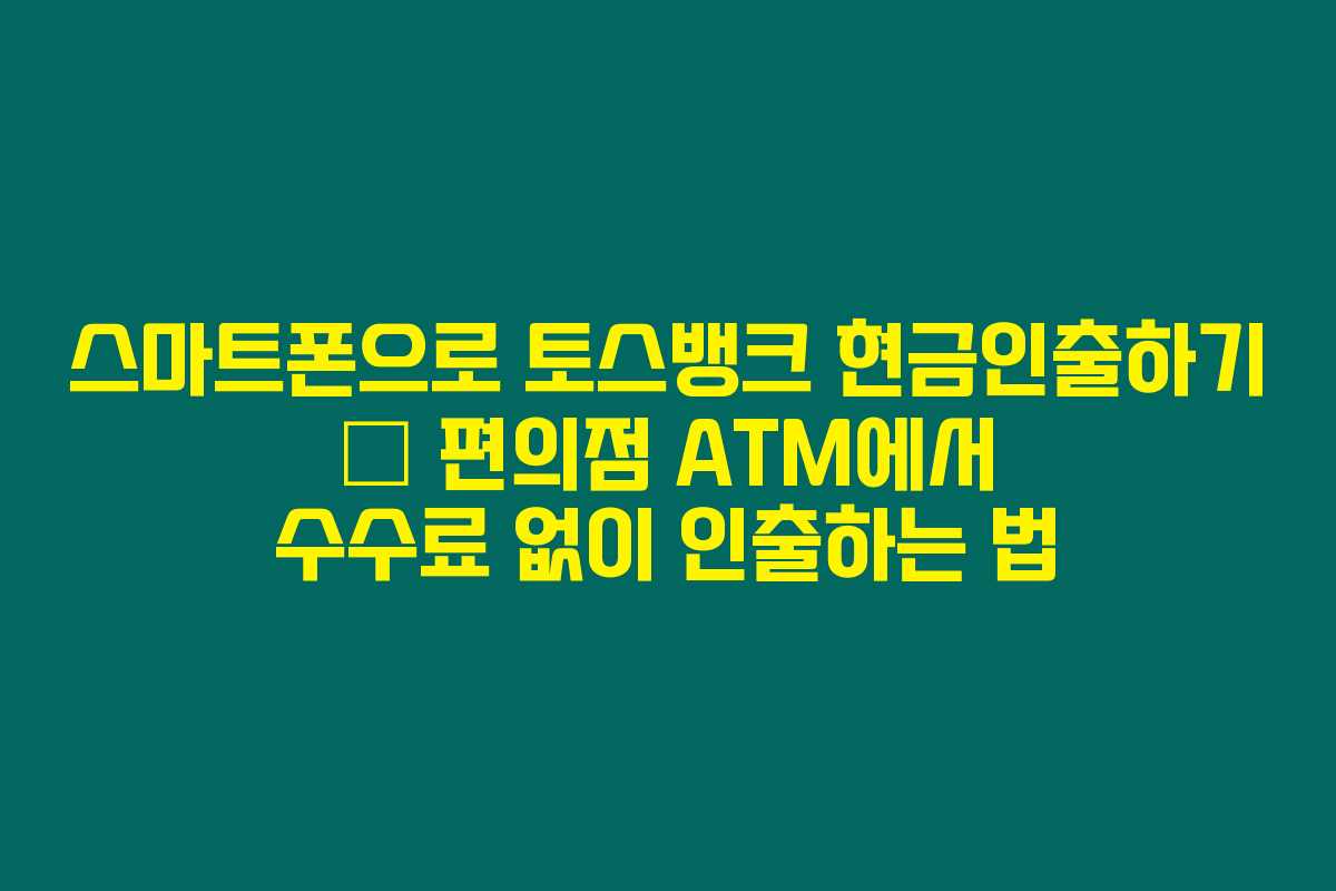 토스뱅크의 가장 큰 장점 중 하나는 편의점 ATM에서 수수료가 무료라는 점이에요. 이점이 꼭 확인해 보세요. 다른 은행에서 카드로 현금 인출할 경우 수수료가 발생하기 때문에, 이건 대단히 유용한 요소랍니다.