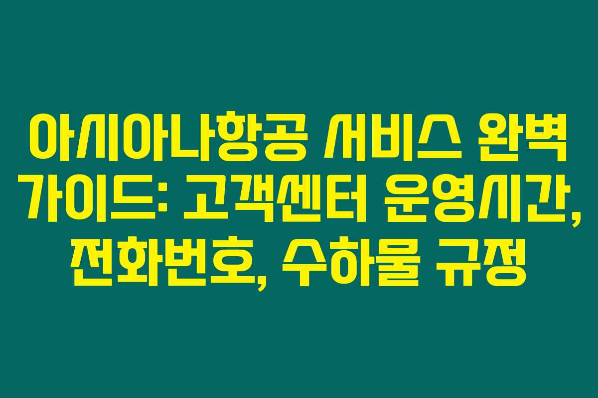 여행을 준비하면서 아시아나항공에 대한 정보가 필요하신가요? 아시아나항공의 고객센터 운영시간, 전화번호, 그리고 복잡한 수하물 규정에 대해 천천히 살펴보겠습니다. 아래를 읽어보시면 특히 수하물 규정이 국제선과 국내선에서 어떻게 다른지, 체크인 시 주의해야 할 점 등 유용한 정보를 확인할 수 있어요.