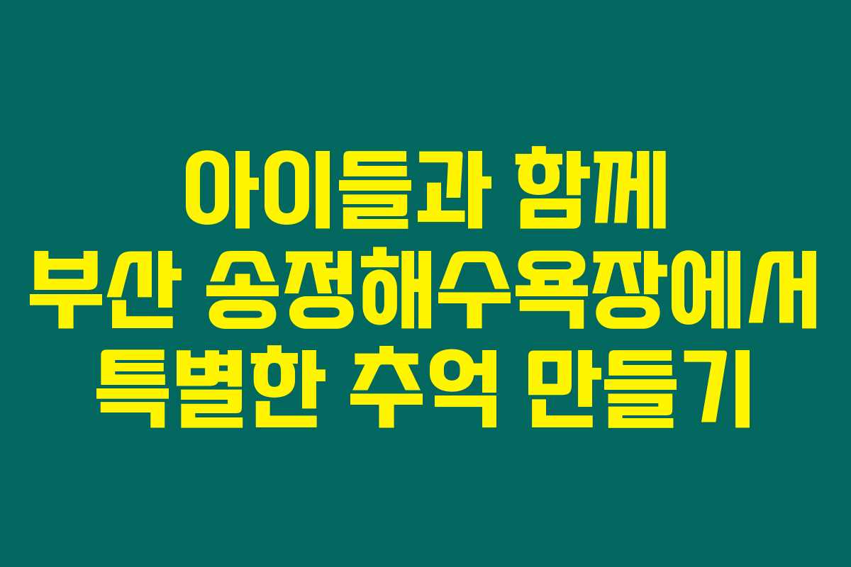 부산 송정해수욕장은 안전한 환경과 다양한 즐길 거리 덕분에 아이들과 특별한 추억을 만들기에 훌륭한 장소랍니다. 여러 해양 생물을 관찰하고, 맛있는 음식을 즐기며 가족과 함께 소중한 시간을 보낼 수 있는 기회를 놓치지 마세요. 언제나 안전하고 즐거운 여행을 기원해요!