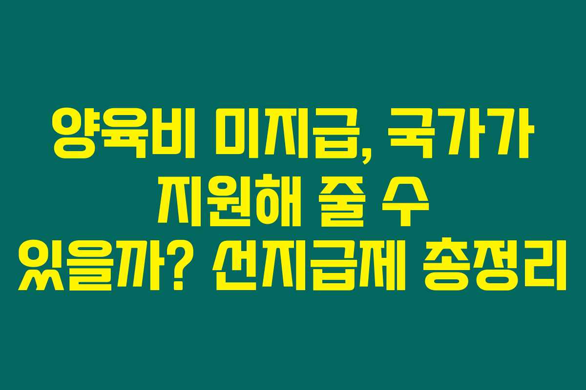 제가 직접 경험해본 결과로는, 많은 부모님들이 이혼이나 별거 후에 양육비를 제대로 받지 못하는 일들이 흔하게 일어나고 있습니다. 이런 상황에서 특히 주목할 만한 제도가 바로 ‘양육비 선지급제’입니다. 이 제도는 정부가 일정 요건을 만족할 경우 미지급된 양육비를 대신 지급해주는 제도입니다. 아래를 읽어보시면, 양육비 선지급제의 전반적인 내용에 대해 상세히 설명드릴게요.