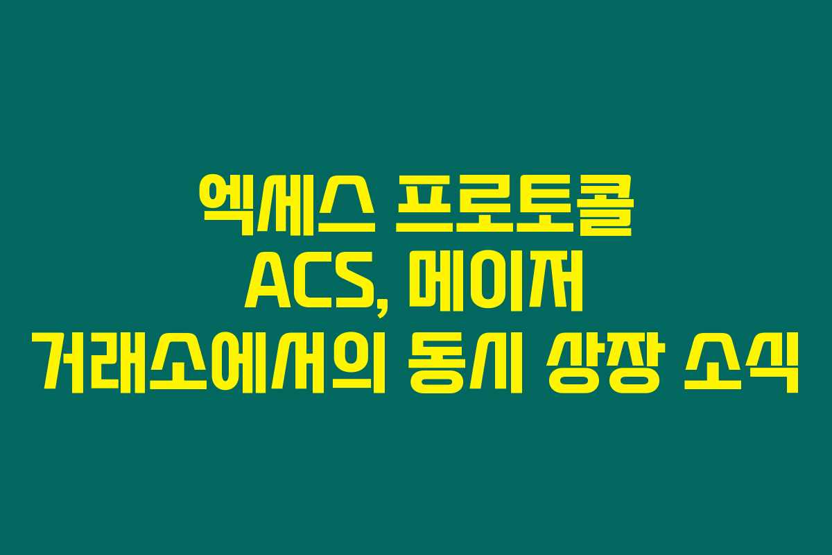 제가 직접 경험해본 결과로는, 엑세스 프로토콜(Access Protocol)의 ACS 토큰이 글로벌 메이저 거래소에 동시 상장되는 소식은 많은 투자자들에게 큰 기대감을 안겨주고 있습니다. 그렇다면 이번 동시 상장 소식이 어떤 의미를 가지는지, 더 나아가 이와 관련된 정보들을 아래를 읽어보시면 상세히 알아보실 수 있습니다.