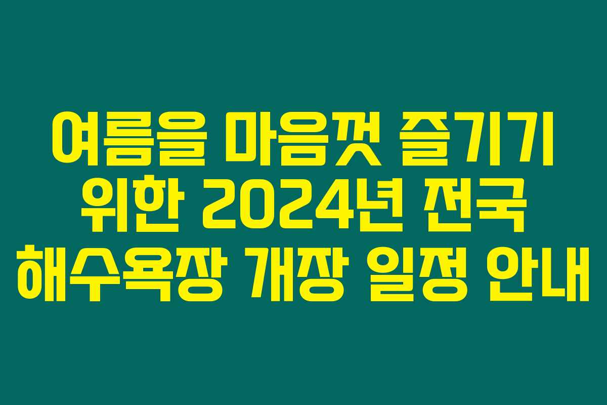 전국 해수욕장 개장일은 지역별로 다르며, 강원도는 6월 29일에서 시작하며, 제주도는 6월 24일부터 개장합니다.