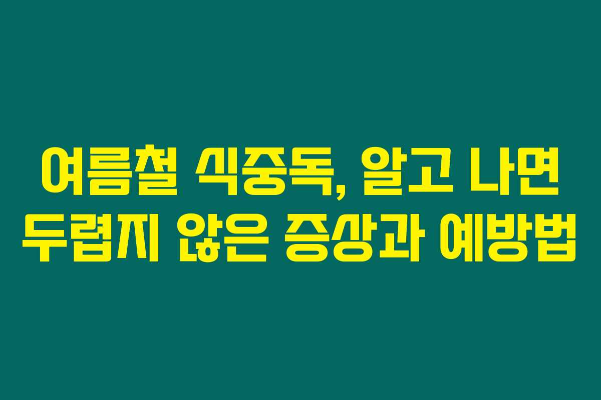 모두 이 음식들을 알고 조심하면 여름철에도 건강하게 보낼 수 있을 거예요. 매년 여름이 찾아오지만 올해는 좀 더 건강하게 여름을 만끽해 봐요!