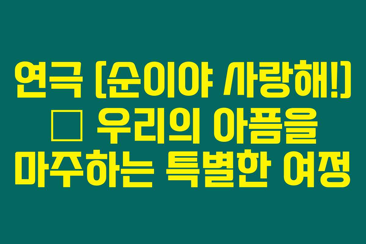 연극 [순이야 사랑해!]는 과거와 현재가 연결되는 가교 역할을 하는 멋진 작품입니다. 이러한 작품들이 계속해서 우리의 문화를 풍요롭게 해 나가기를 바라요. 여러분도 꼭 한번 관람해보세요!