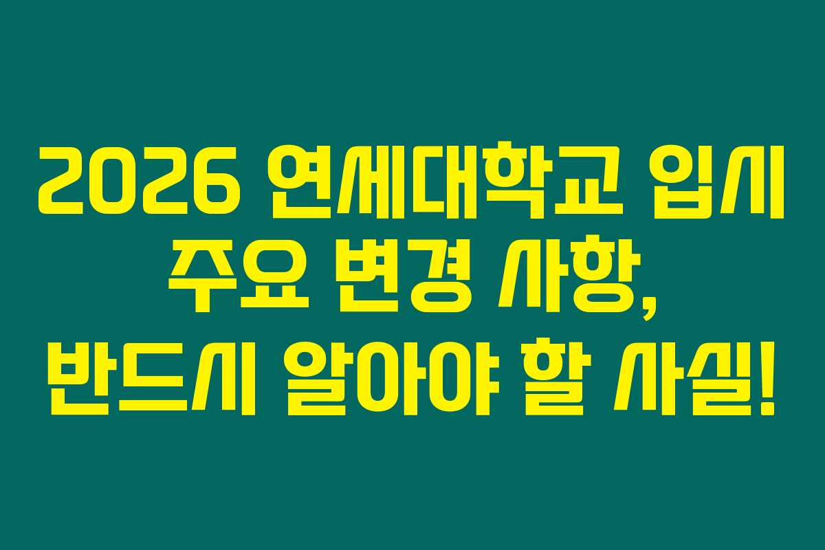 2026학년도 연세대학교 입시를 준비 중이라면 꼭 확인해야 할 내용이 있어요. 연세대 입시의 주요 변경 사항을 정리해 두었으니 최적의 준비를 위해 놓치지 말고 확인해보세요. 이 정보를 통해 좋은 결과가 있길 바래요!