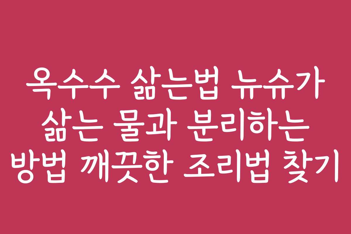 옥수수 삶는법 뉴슈가 활용법 및 실전 팁