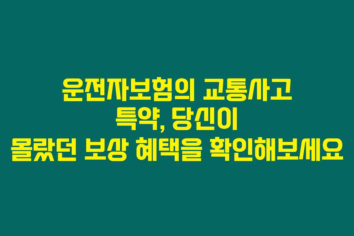 아래를 읽어보시면, 교통사고 특약 보상 혜택을 통해 낮은 보험료에도 불구하고 큰 위로금을 받을 수 있는 기회를 놓치지 않게 될 거예요.