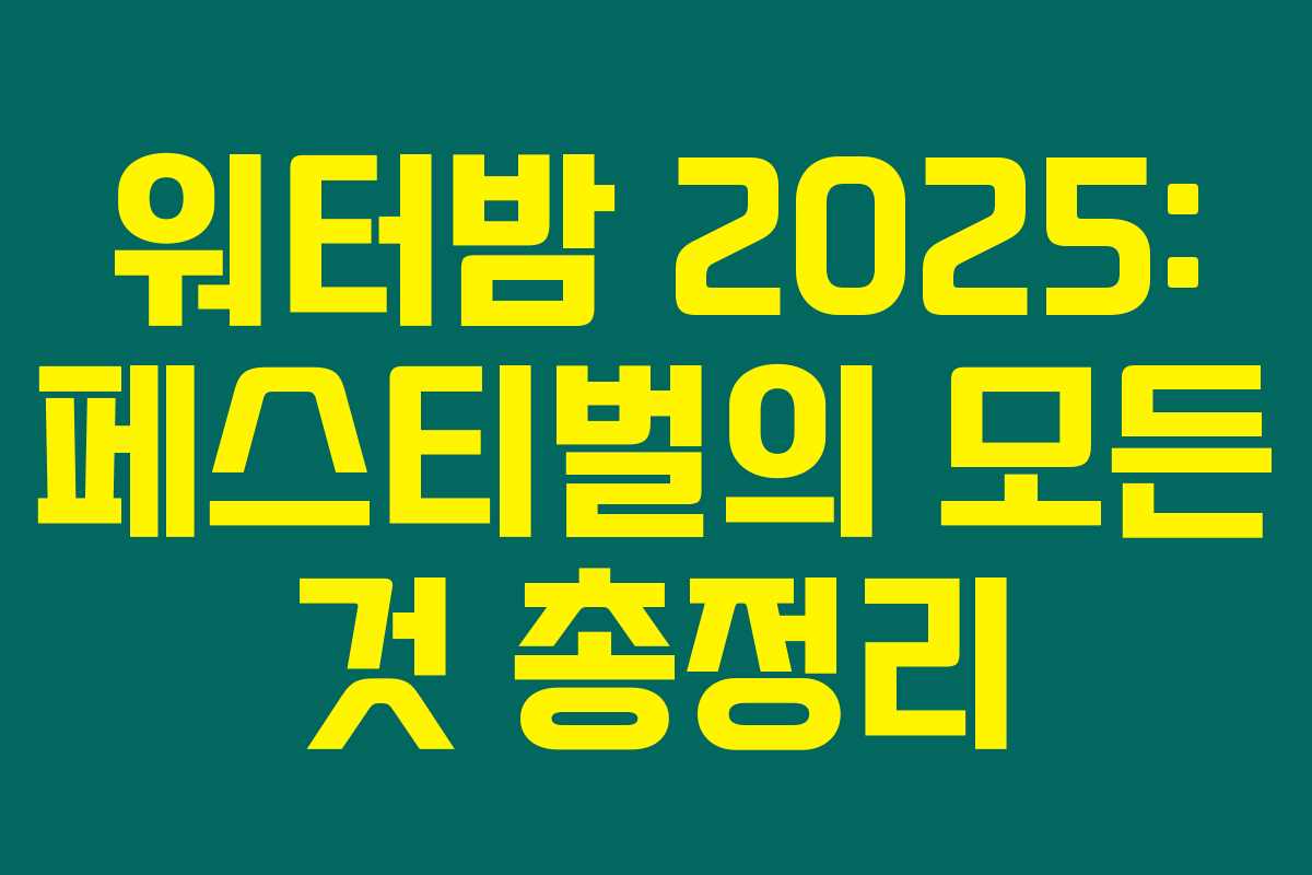 여름이 오면 다가오는 건 뜨거운 태양과 함께 즐거운 축제! 그 중에서도 특히 기대되는 워터밤이 2025년에도 돌아옵니다. 물총과 음악이 함께 하는 이 특별한 경험은 매년 많은 사람들에게 사랑받고 있죠. 아래를 읽어보시면 워터밤 2025의 라인업, 티켓 예매 방법, 옐로우와 그린 팀의 차이, 그리고 필수 준비물에 대한 정보가 가득하답니다!