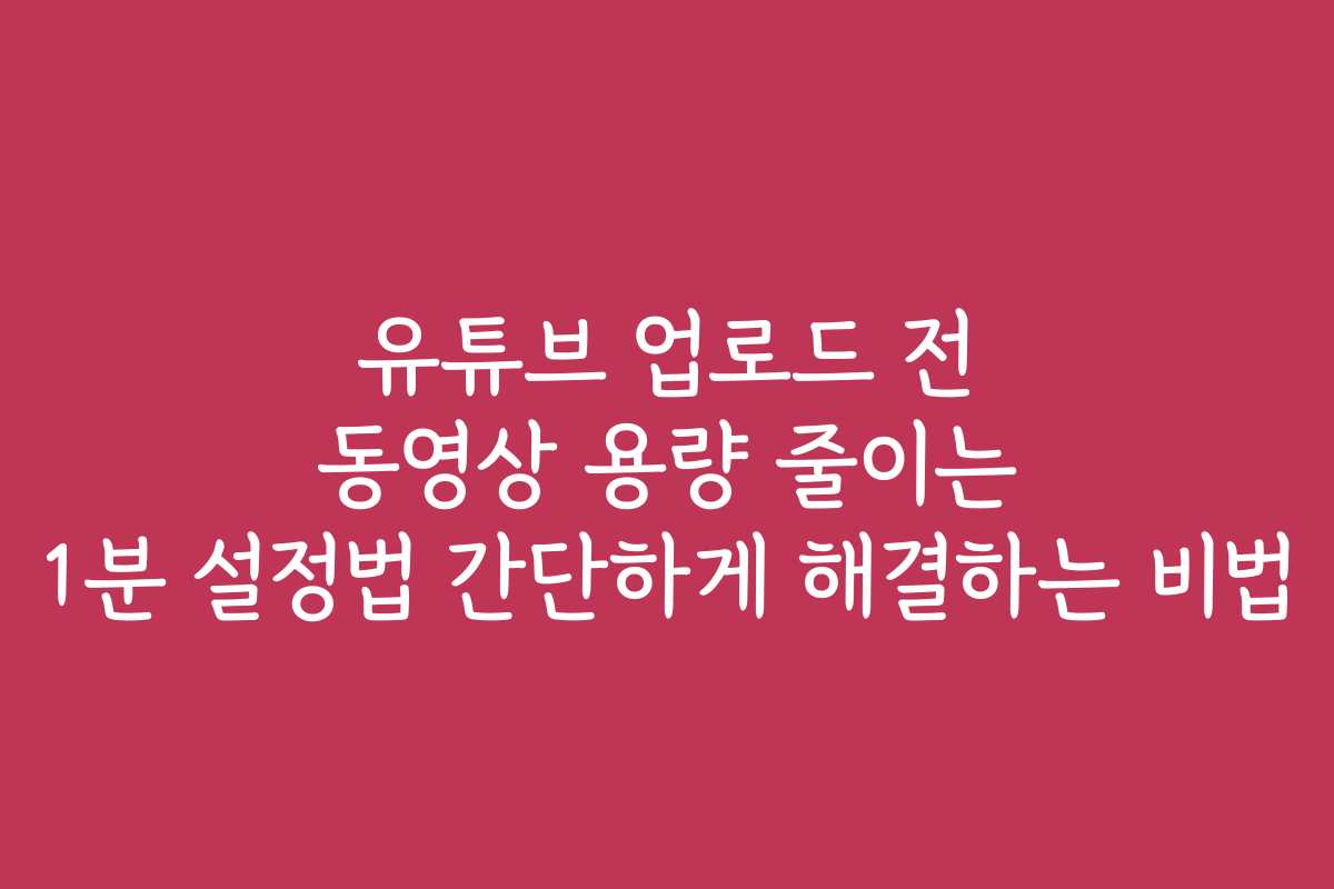 유튜브에 영상을 업로드하기 전에 동영상 용량 문제로 고민하고 계신가요? 용량이 커서 업로드가 지연되거나 실패하는 경험을 한 분들이 많습니다. 이번 포스팅에서는 ‘유튜브 업로드 전 동영상 용량 줄이는 1분 설정법’을 쉽고 간단하게 해결할 수 있는 방법을 소개합니다.