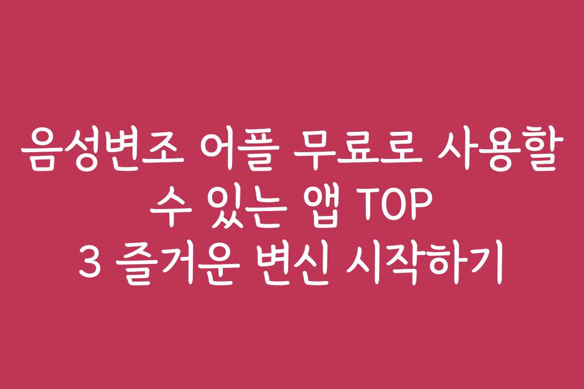 요즘 많은 사람들은 기존의 목소리에 변화를 주고 싶어하는 욕구가 커지고 있습니다. 하지만 고가의 장비를 구입하기엔 부담스러울 수 있죠. 이에 음성변조 어플을 통해 손쉽게 목소리를 변형할 수 있는 앱 TOP 3를 소개합니다. 무료로 사용 가능하니 부담 없이 즐거운 변신을 시작해보세요!