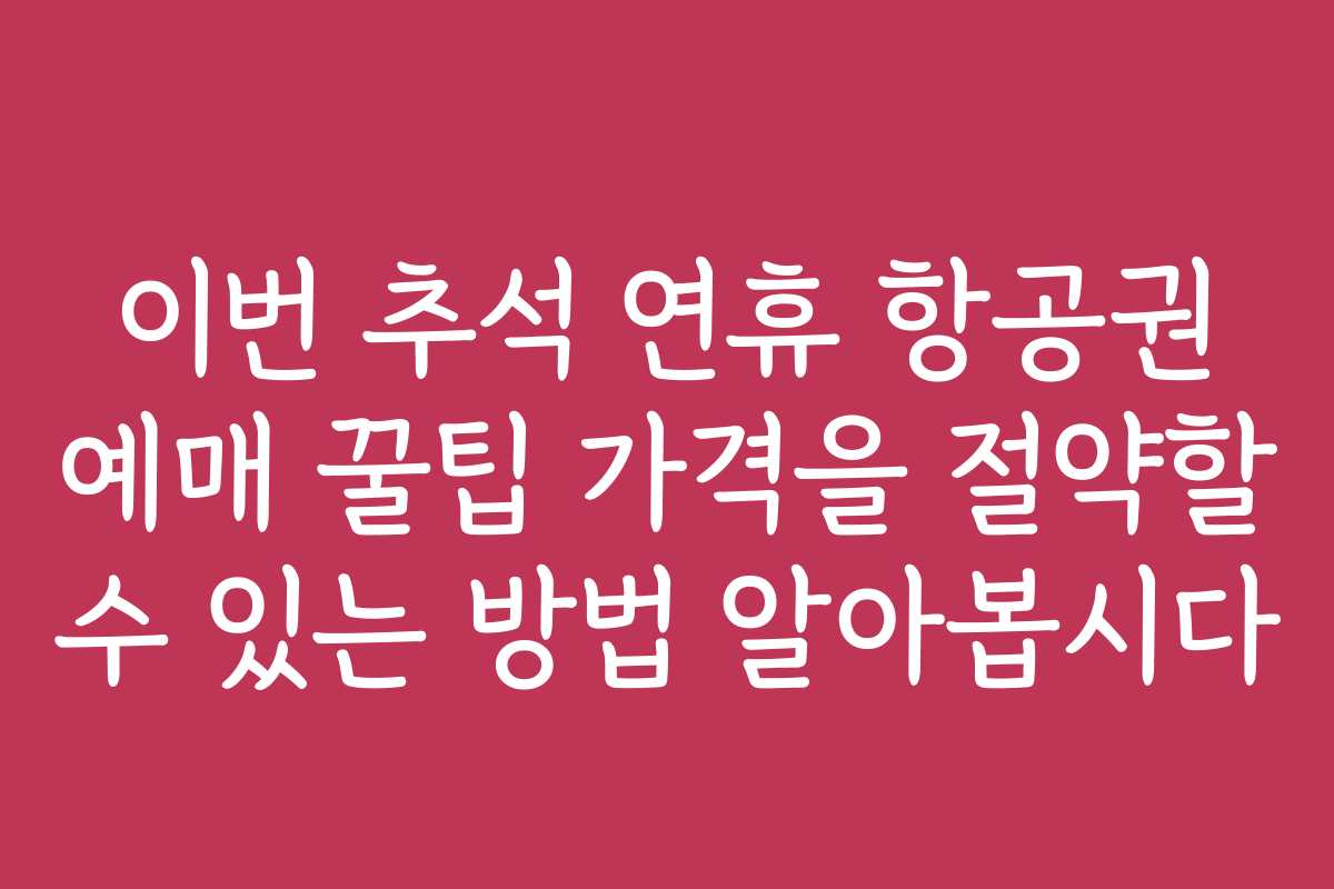 이번 추석 연휴 항공권 예매는 사전에 철저한 준비가 필요합니다. 다양한 팁과 전략을 활용해 보다 저렴하게 항공권을 예매해 보세요. 항공권 가격 절약을 위한 이 가이드를 통해 뜻깊은 연휴를 보내시길 바랍니다!
