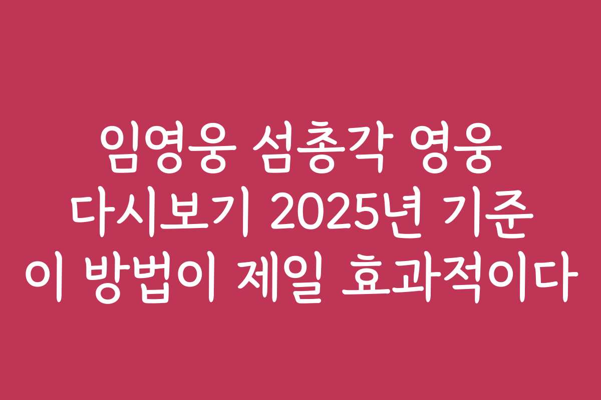 임영웅 섬총각 영웅 다시보기, 2025년 기준 가장 효과적인 방법은?